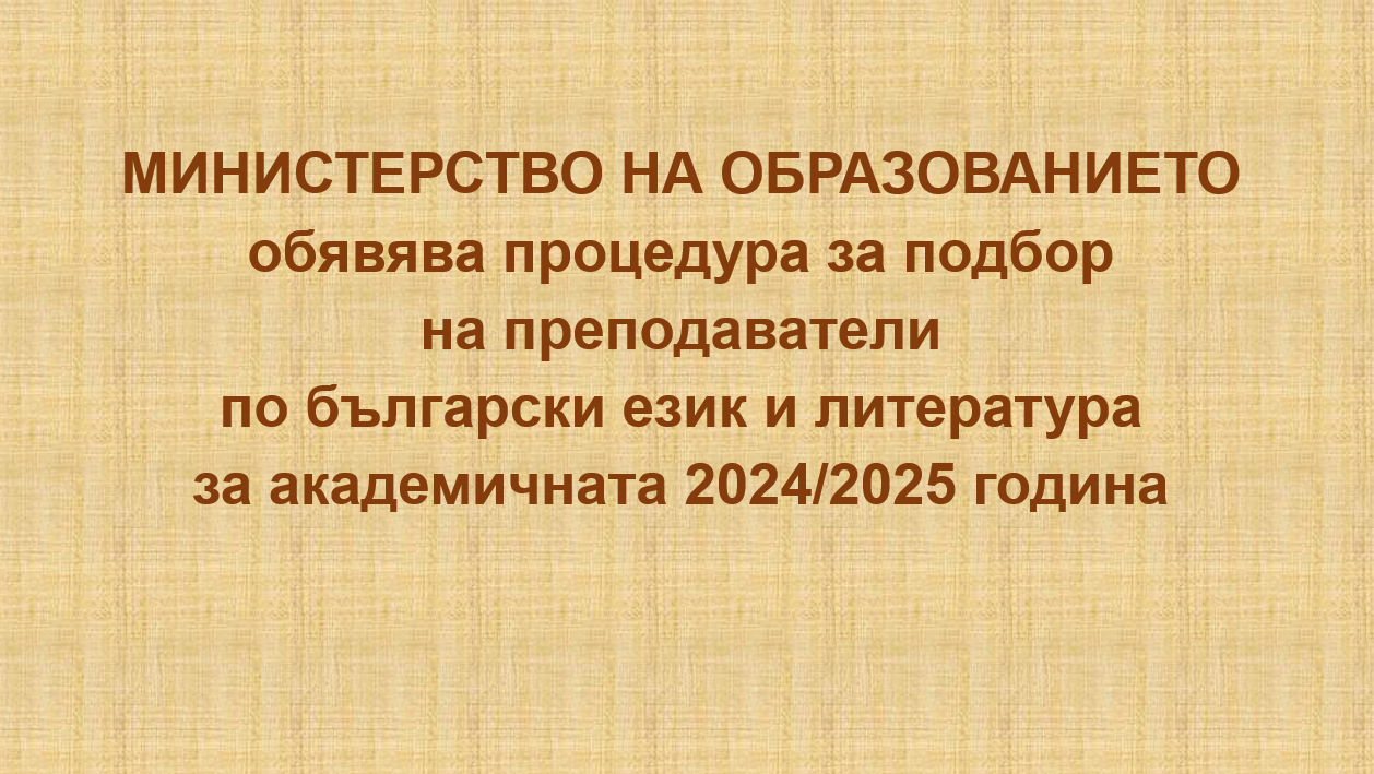 ПРОЦЕДУРА ЗА ПОДБОР на преподаватели по български език и литература за академичната 2024/2025 година